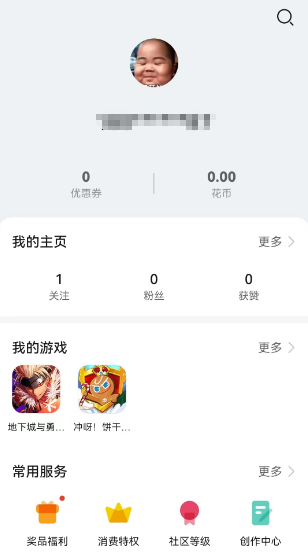 5、打开个人中心,查看自己的游戏信息,领取游戏礼包,体验更多游戏服务;