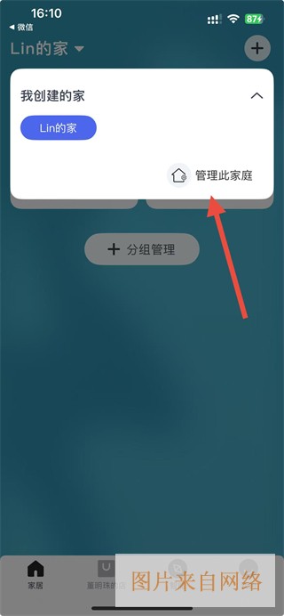 2、在弹出的菜单中,点击管理此家庭选项,进入家庭信息页面。