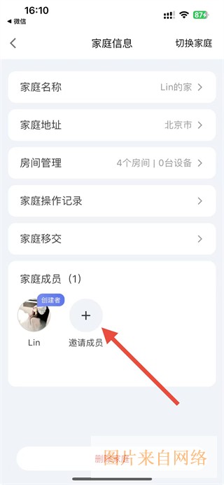 3、在家庭信息页面,点击家庭成员区域的邀请成员加号图标。