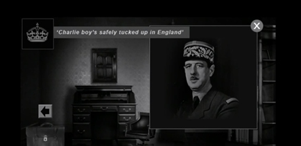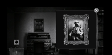 进入以后首先进入左手边的第一个房间,从右边开始点击的话,第一个就能看到一个咬着雪茄的老士兵照片和大胡子照片。而看到大胡子的照片的时候会提示查理的安全在英格兰类似的信息。