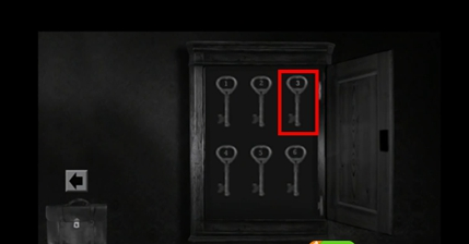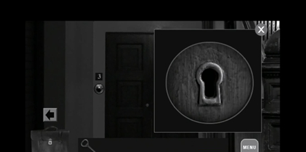 退出房间,点击走廊正中间的门,可以看到,标号为3号,点击钥匙孔即可打开3号门。