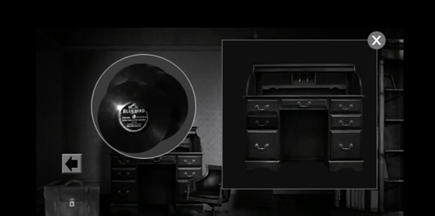 按照点击左边的柜子,然后逐个点击柜子的抽屉会看到印章、碟子、电池、文件夹、订书机、手电筒和圆形类似金币的东西。