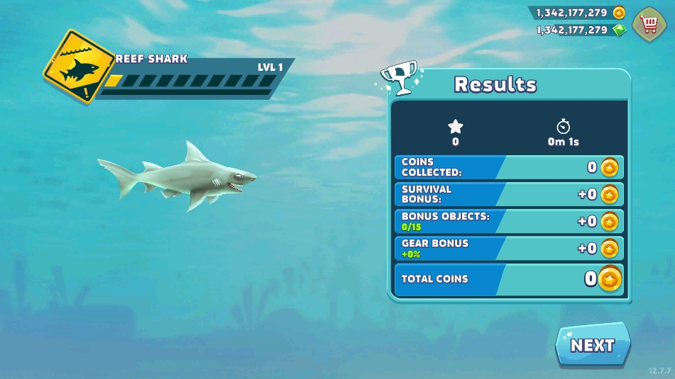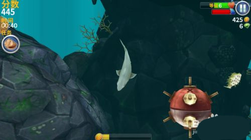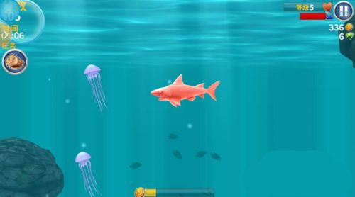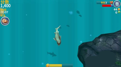 4、完成50个任务,寻找宝物取得金币与宝石,用来升级你的鲨鱼或者购买特殊救生道具。