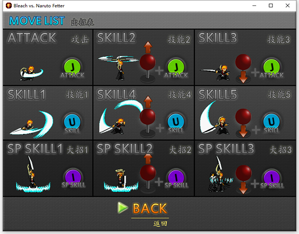 变身:J+K(三格气,限一护/鸣人/佐助/日番谷东狮郎/露琪亚/九尾妖狐/一护虚化状态/乌尔奇奥拉黑/仙人鸣人)其他角色请玩家摸索可否变身。