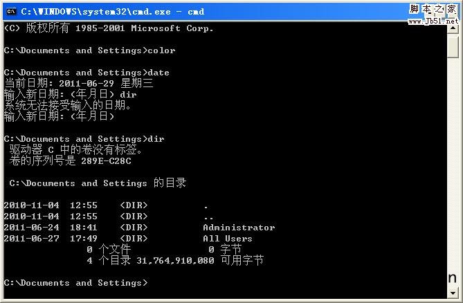 COLOR 设置默认控制台前景和背景颜色。