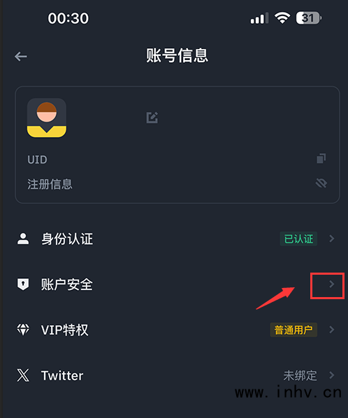 点击 账户安全 进入